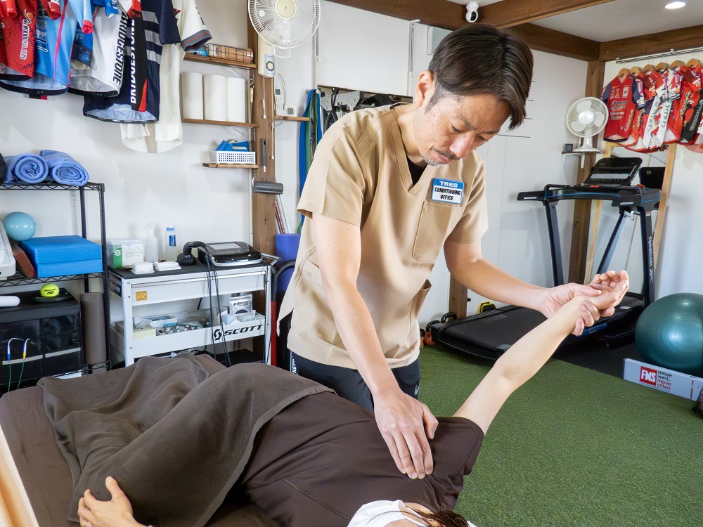 鍼灸接骨院トレスでは、アフターフォローに力を入れており、患者様が自分で自分をケア出来るサポートを行っております。